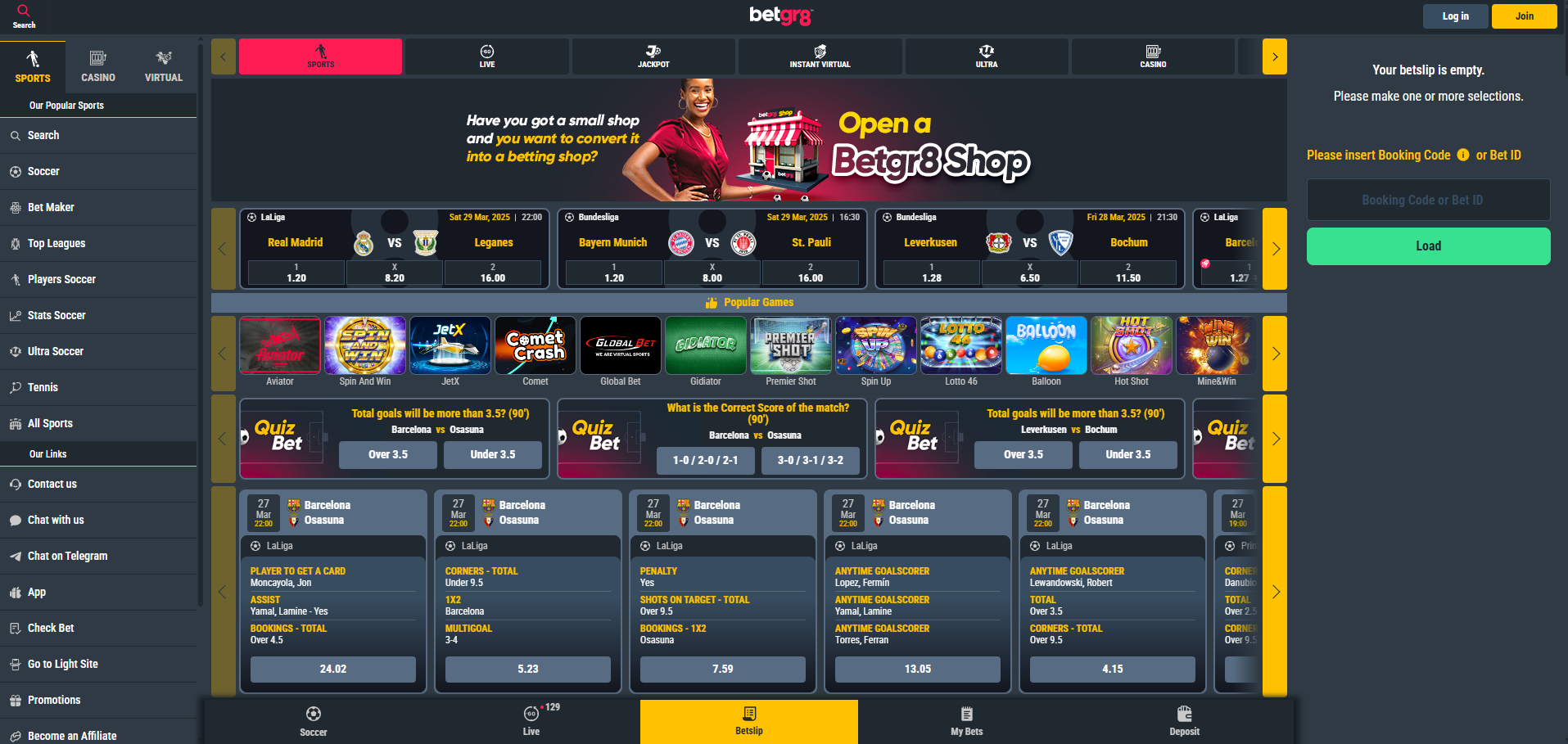 Betgr8 is a betting website with a wide variety of sports and casino games. It offers legal gambling services in Nigeria. All new clients of the platform can take advantage of its lucrative Welcome promotion of 100% up to 10.050 NGN. The bonus applies to all sporting events including soccer, tennis, basketball, and so on. In terms of the casino, the company offers slots, crash, table games, and jackpots. Live dealer options are also available.